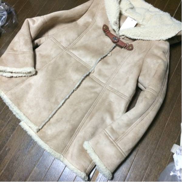 - 新品ボアポンチョマントコートベージュフードフェイクムートン風Fダッフルマントスエード風ケープコート