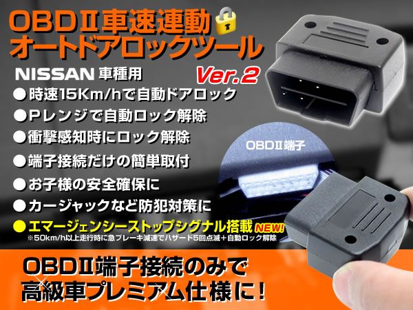 - ニッサン 車速連動でドアロック&Pレンジで自動ロック解除 OBD2