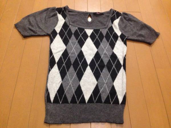 - 新品chereaux【シェロー】の半袖カットソー★1380円即決★9号、Mサイズ、アーガイル柄