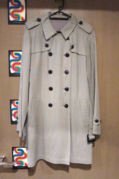 - トレンチコート 黒×白 薄手 ピンストライプ