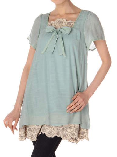 - 307◇胸元裾バラ刺繍Aラインチュニ グリーン 緑 axes femme アクシーズ ファム TS352X38 チュニック