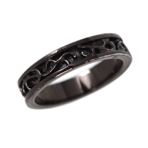 > ★人気★お勧め★漆黒★変色無★手入れ不要★肌に優しい★金属アレルギー&温泉&海水浴ご使用OK★ステンレスリング★ブラックアラベスク