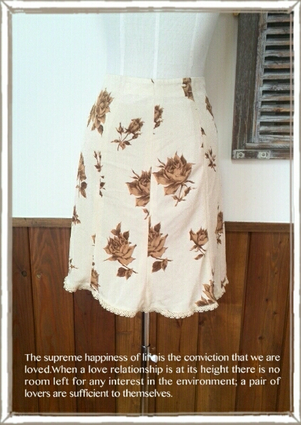 > レディース 日本製 花柄 上品 フレアー スカート Mサイズ ベージュ 膝丈 ベージュ タイト ミセス ブラウン D