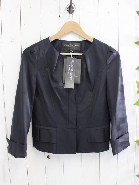 > 定価30,000円 新品*BODY DRESSING Deluxe ボディドレッシングデラックス*サイドプリーツ タックノーカラージャケット 34(XS)