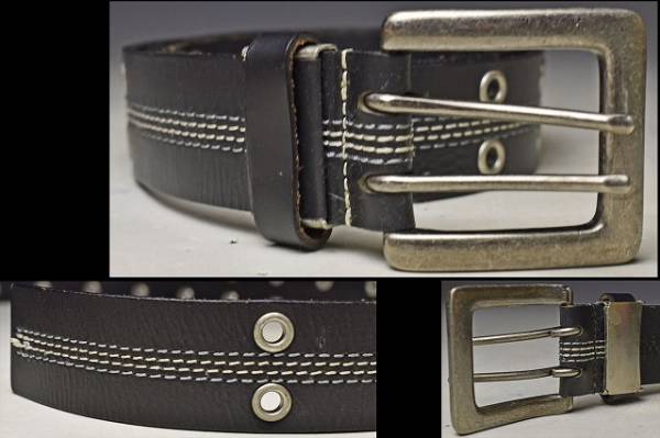 - 【ベルト】 ステッチ ダブルリベット ベルト 黒