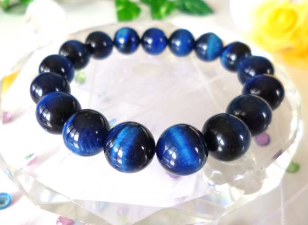 > ★仕事運★成功運★幸運の石★高品質AAA★ネイビーブルータイガーアイ★ ★大珠12mm★ ★17cm★
