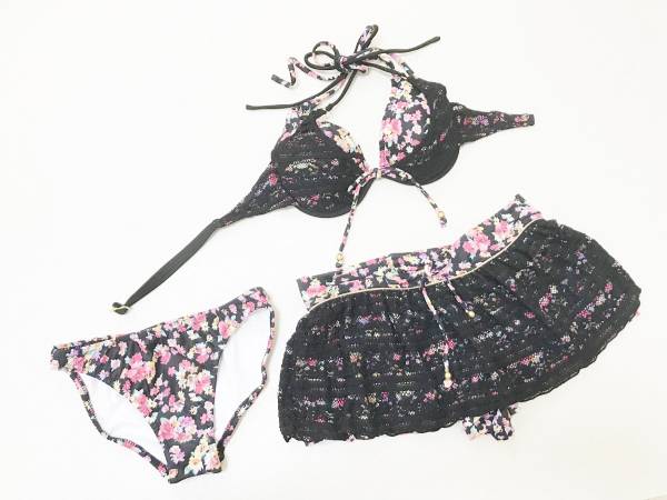 - ●水着 9M●ru/丸井★ブラックレース重ねひらひらパレオスカート水着/ワイヤービキニ