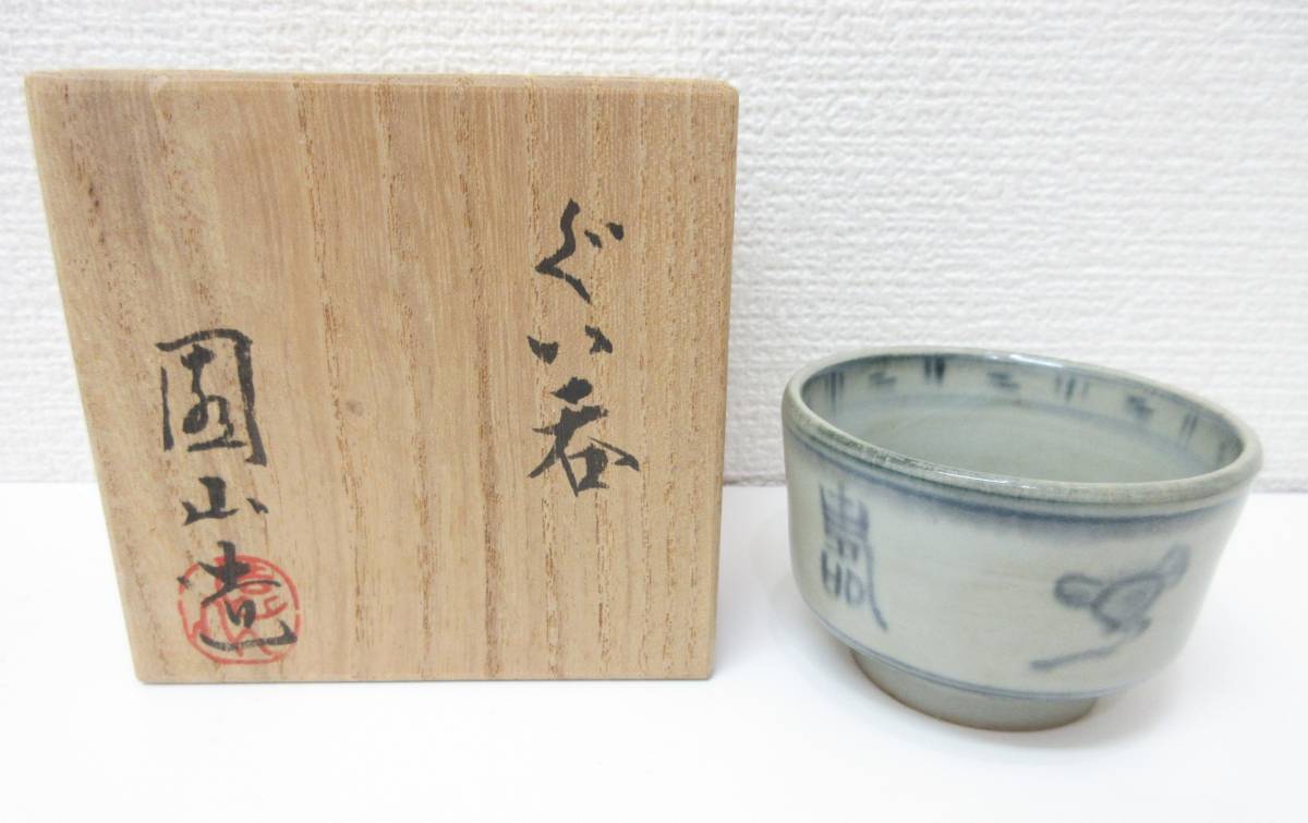 - 未使用品■園山作 ぐい呑 馬 うま 酒器 銘あり 木箱 管理1708 F-6