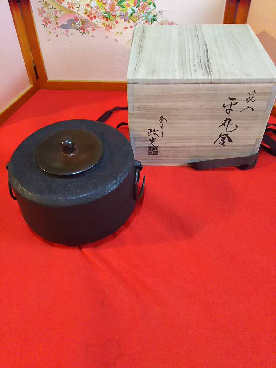 - (鳥羽庵)うぶだし骨董茶道具釜師菊地政光平丸釜(共箱付)