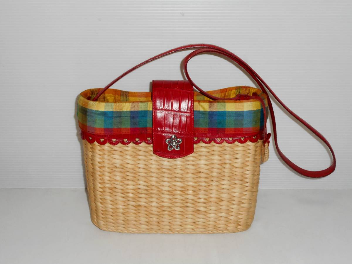 - ブライトン Brighton カゴ × レザー ショルダーバッグ チェック柄 (1Aハ大