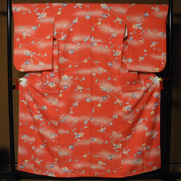 - 正絹 袖丈長め 椿柄 小紋 美品 -袷-