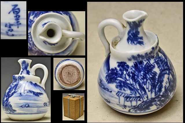 - 原平 在銘 ★ 京焼 ★ 染付風水文水滴 ★ 木箱 ★ 書道具 ★ 検 清水焼 ★