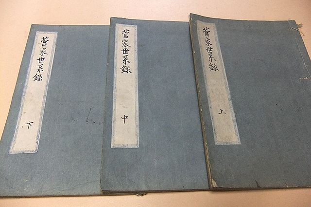 - 菅家世系録・上中下3冊/玉田永教・江戸後期の神道講釈師/菅原道真の家系・伝記を挿絵入りで解説/その影響は吉田松陰にも及ぶといわれる