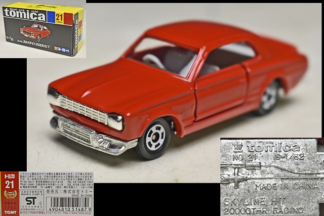 - 【TOMY トミカ】NISSAN スカイライン 2000GT(赤 レッド)1/62スケール トミカ21