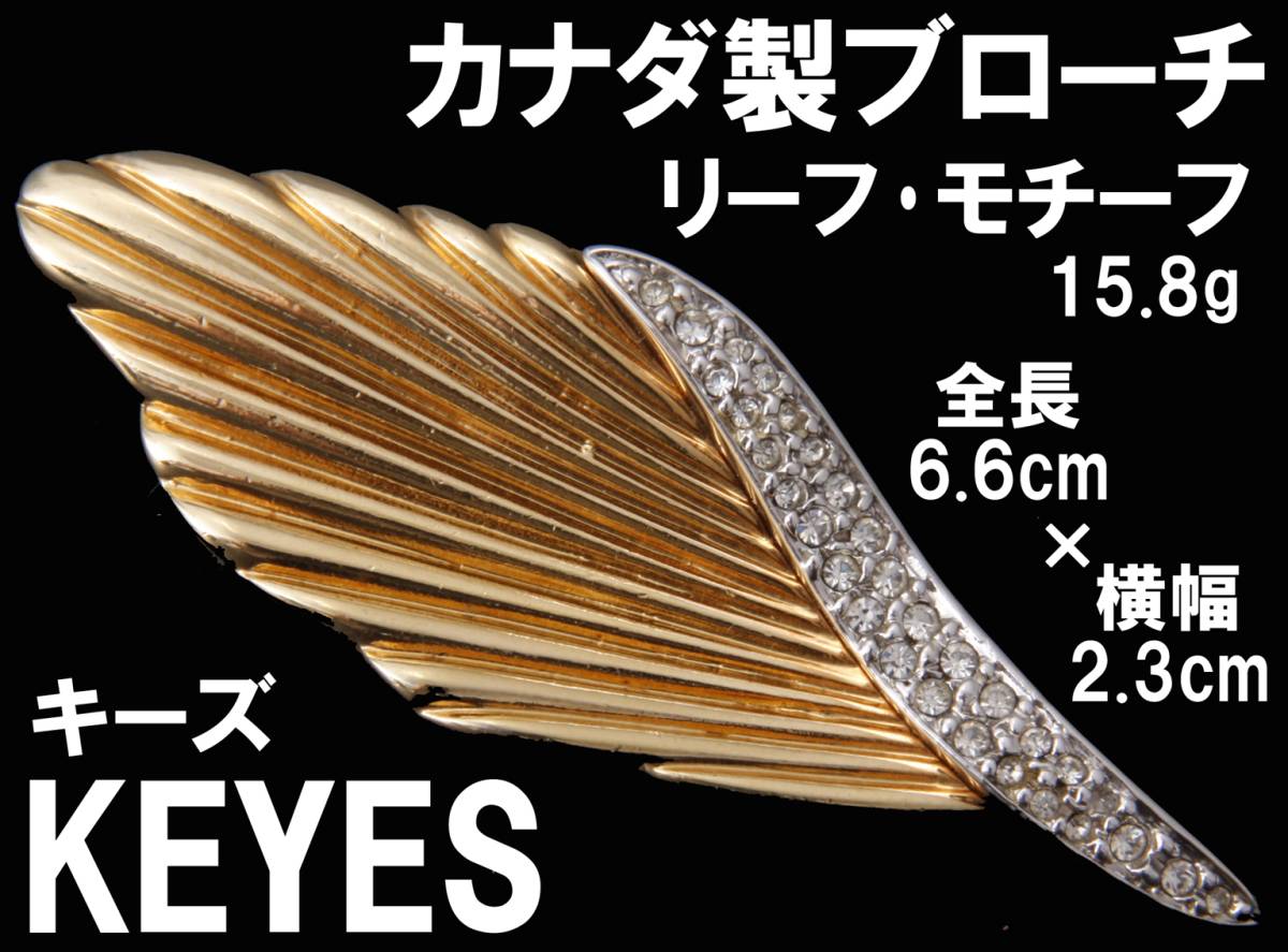 - KEYES キーズ カナダ ブローチ リーフモチーフ ラインストーン ゴールドカラー 長さ6.6㎝ 横幅2.3cm 15.8g USED KA-6785