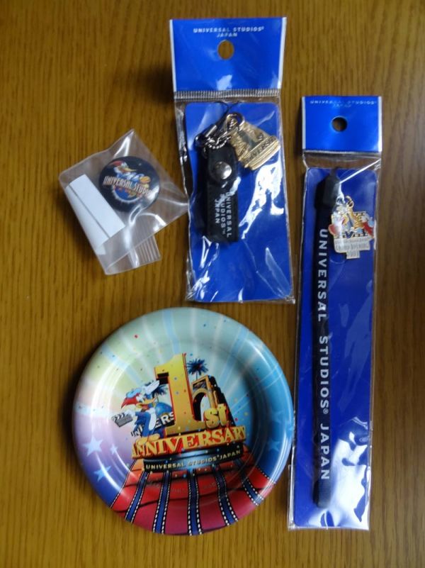 - ユニバーサルスタジオジャパン「2001年オープニング&1周年ストラップ&ブリキトレイ」「ウッドペッカー缶バッジ」 USJ 4点セット