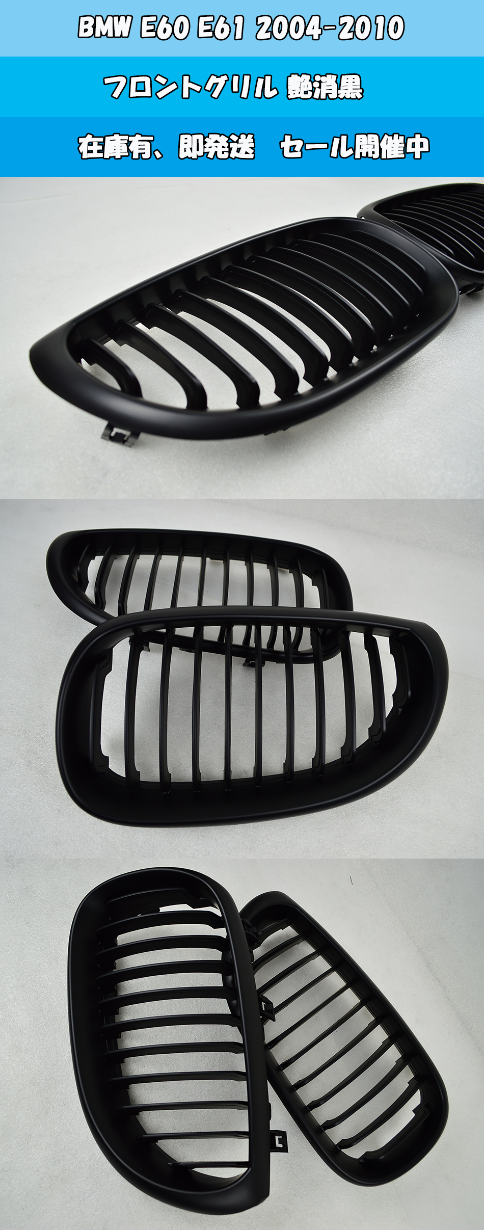 > 純正交換用 左右セット 取付簡単 在庫有 BMW E60 E61 フロントキドニーグリル マットブラック 艶消黒1 ABS 2004-2010