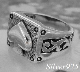 - シルバー925銀の印台スペード マーク リング/15号.17号.19号.21号より/Bu-boon silver
