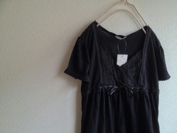 - ★未使用タグ付き★craccoron★胸元穴あきレースのカットソー★M