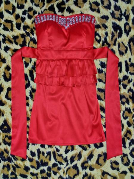 - 中古 使用感あり シミあり キャバ嬢 ドレス ミニドレス 赤 ageha キャバクラドレス 衣装 夜仕事 サイズS~M 全長約63cm