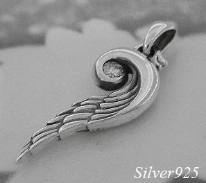 - シルバー925銀のジルコニア付 プチ フェザー ペンダント/シルバーアクセALL50%OFF