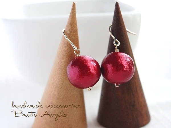 - ★+angelo+K14GF コットンパールの一粒ピアス(p-406)レッド 14mm シンプル 赤