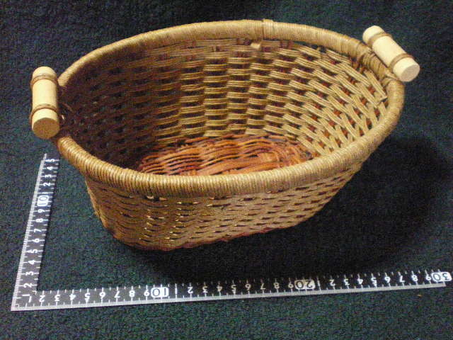 - 珍品フリマ・竹・籐] 籐製 側面は紙ヒモ製 じょうぶなカゴ 物入れ 大きさ:長径 26cm 短径 18.6cm 高さ 11cm [送料無料]