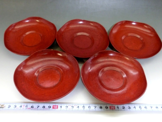 - 茶托■朱塗り 漆器 梅型 煎茶器 漆器 お茶道具 古美術 時代物 骨董品■
