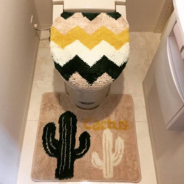 > 西海岸テイスト Native【WC トイレカバー & トイレ足下マット】キリム オルテガ ネイティブ柄 サボテン柄【レストルーム 模様替】60×55cm