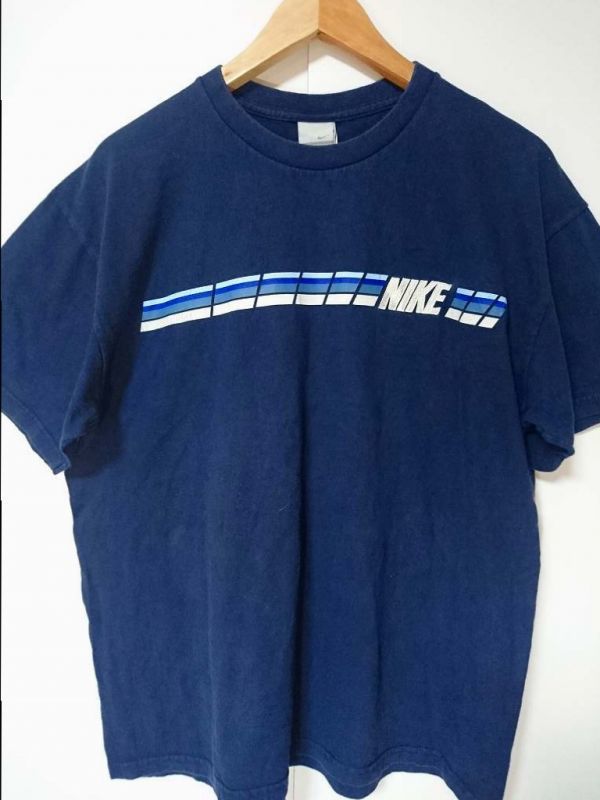 - ☆NIKE ナイキ ラインプリント ロゴ 刺繍 Tシャツ US【M】ネイビー コットン 古着 ◆81237◆