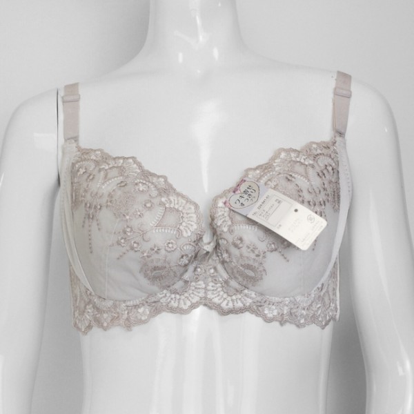 > 【新品】D80 グラマーさんのワキ寄せスリムブラジャー 3/4カップ 脇肉・ハミ肉すっきり 脇高ベルト ベージュ レース アンティーク