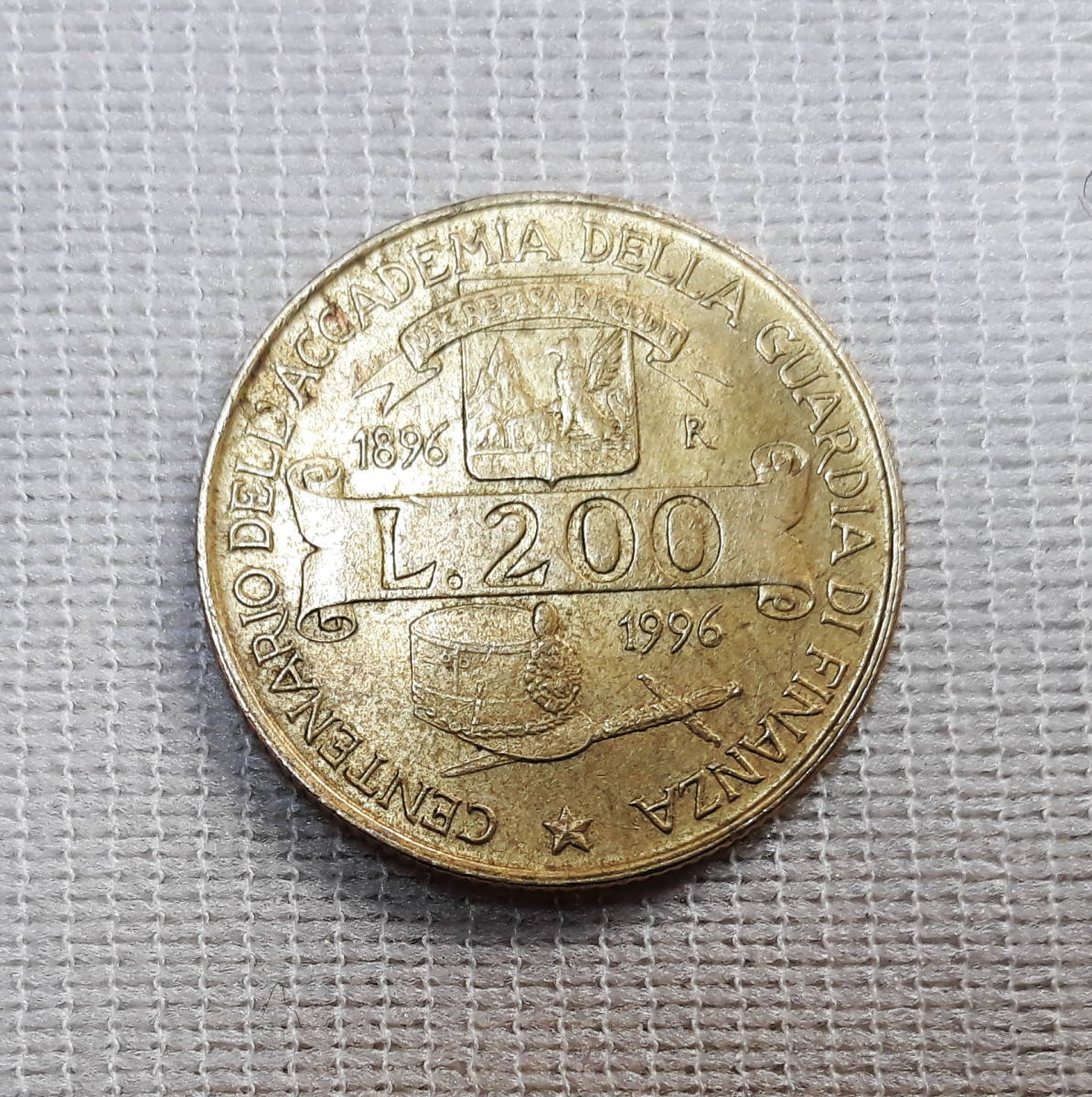 - イタリア 共和国 1896-1996年 200リラ 24mm 帽子 剣 記念 コイン + 他 硬貨 6枚 ◆s-39