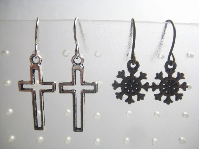 - 新品☆十字架・雪の結晶ピアス