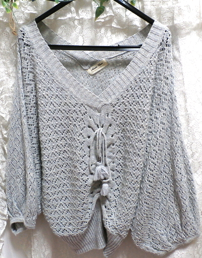 > 灰グレー水色ポンチョ型編みレース/セーター/ニット/羽織 Gray light blue poncho shape lace/sweater/knit/coat