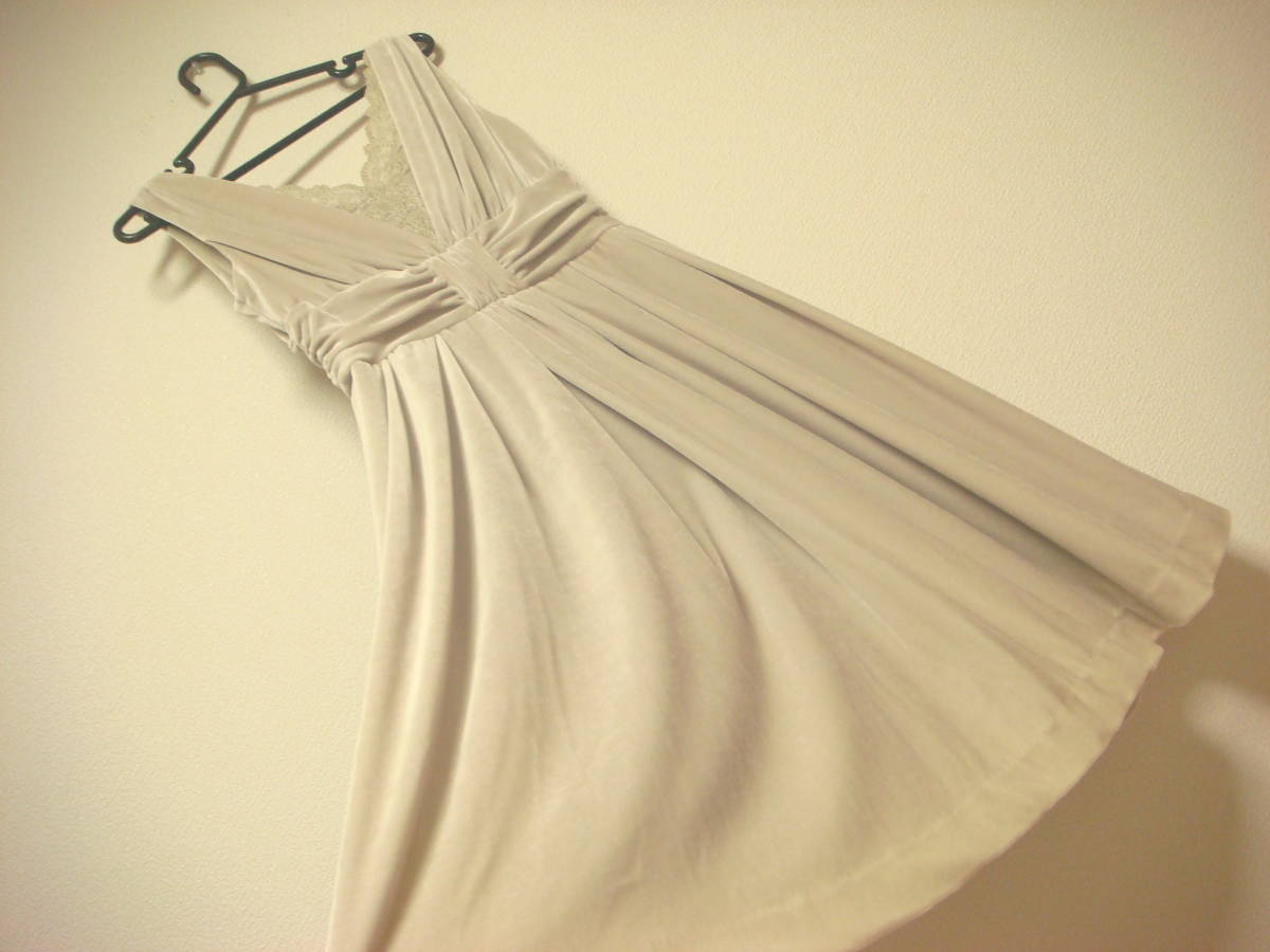 - 素敵! メトリーゼ ベルベット風ベロア シャーリング レースデザイン ワンピース 二次会ドレス 美品 ベージュ