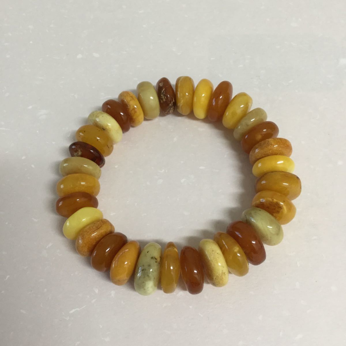 - 天然琥珀 バルチック アンバー ブレスレット ボタン アンティークカラー