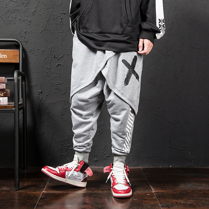 - 春秋新品★メンズ ワイドパンツ サルエルパンツ チノパン プリント ガジュアル 重ねる ゆったり 通気 大きいサイズあり グレー M~5XL