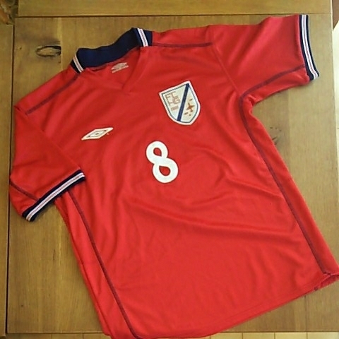 - s569 良品! ■UMBRO■ アンブロ デサント サイズM-L 赤系 半袖 トレーニング ゲームシャツ 身幅52 着丈68 サッカー フットサル ゆうパケ