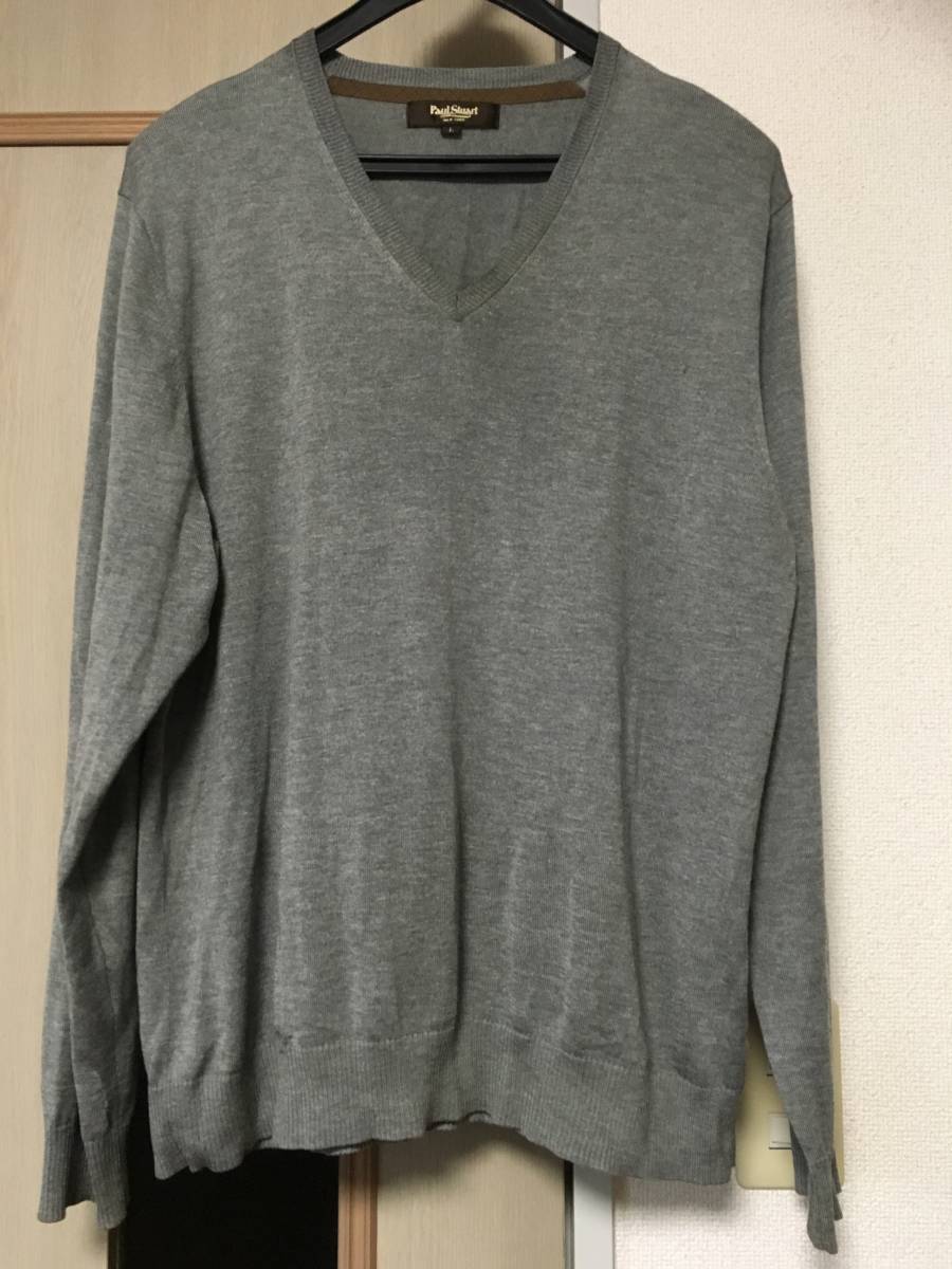> ★ポール スチュアート Paul Stuart ニット セーター Vネック カシミヤ シルク グレー メンズ Lサイズ 難あり
