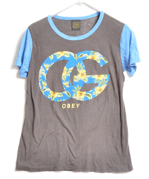 - ST1477 オベイ OBEY Tシャツ 女性 XS 肩37 メールxq