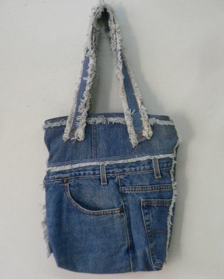 - ジーンズ リメイク デニム トートバッグ 男女兼用/1点のみ ハンドメイド