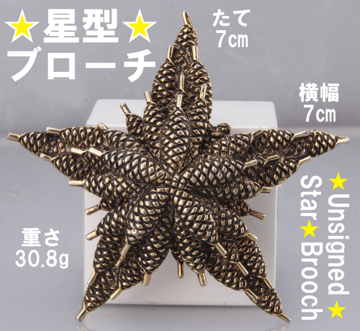 - 星型ブローチ 金古美カラー たて7cm 横幅7cm 30.8g USED KA-7253