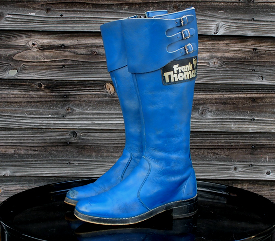 > 英国製 FRANK THOMAS フランクトーマス バックル レザー ブーツ ブルー 青 レディース ロッカーズ カフェレーサー パンク ルイスレザー