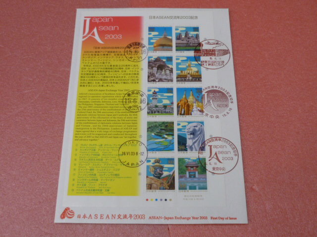 - 19 F#1889A 日本 初日カバー 2003年 日本ASEAN交流年2003 10面シートレット