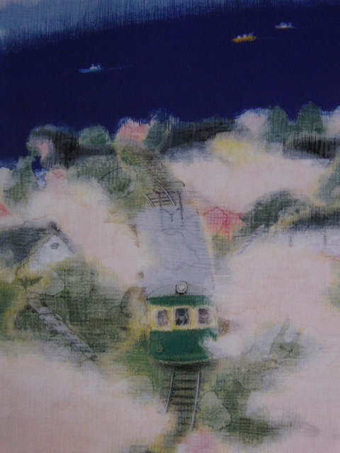- 齋正機、「満開江ノ電」、希少な画集より、 新品高級額装付、状態良好、送料込み、日本人画家、coco