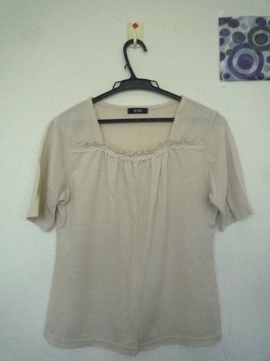 - ★GLISSE 半袖トップス スクエアネック 首元 フリル 薄ピンク?(L)