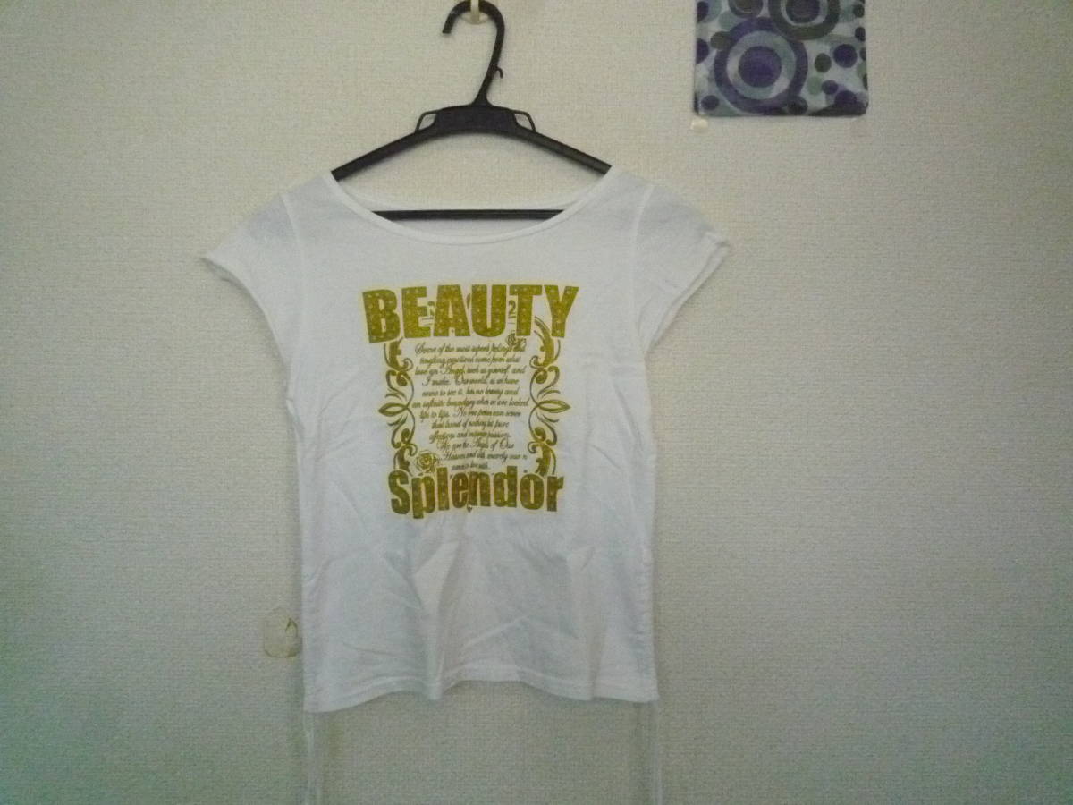 - ★女の子 白 フレンチ袖 Tシャツ ひも付き <150>