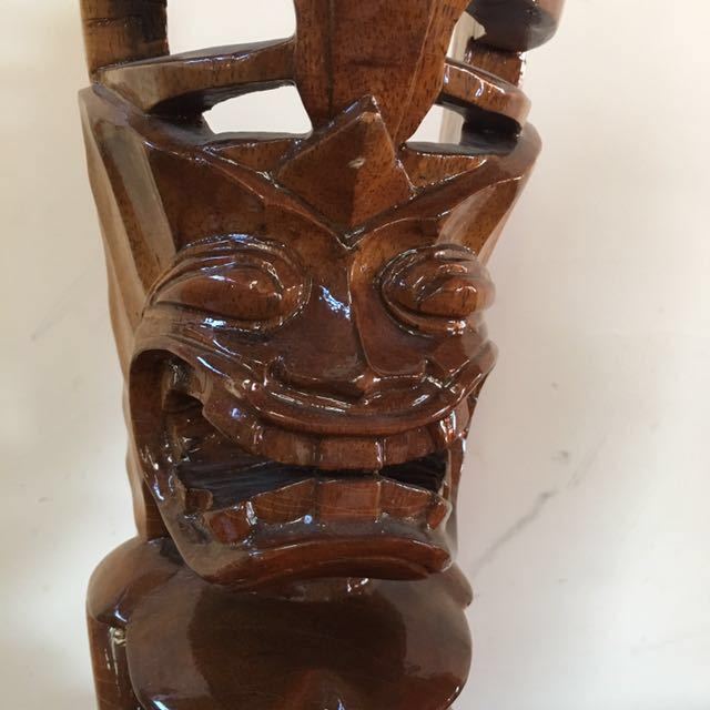 - 木彫 昭和レトロ ハワイ 伝統工芸品 民族エスニック人形ハゲ ツルツル 顔芸 玄関 魔除け ツルツル頭のこの輝きよ 開運コロナ退散健康祈願