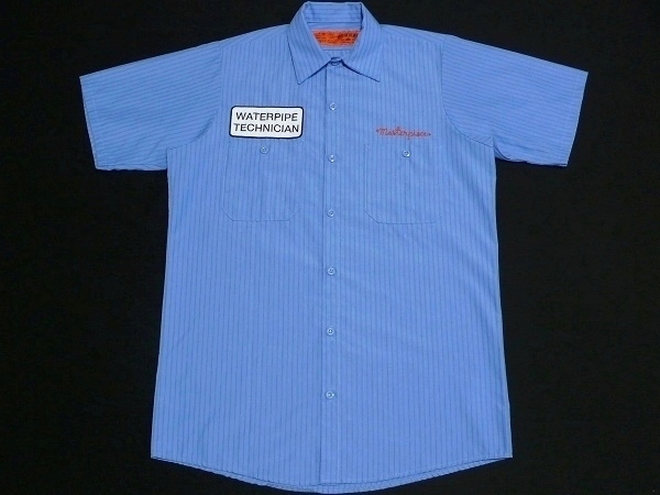- 美品RED KAPxMASTERPIECE半袖65/35ストライプワークシャツSブルー\10780