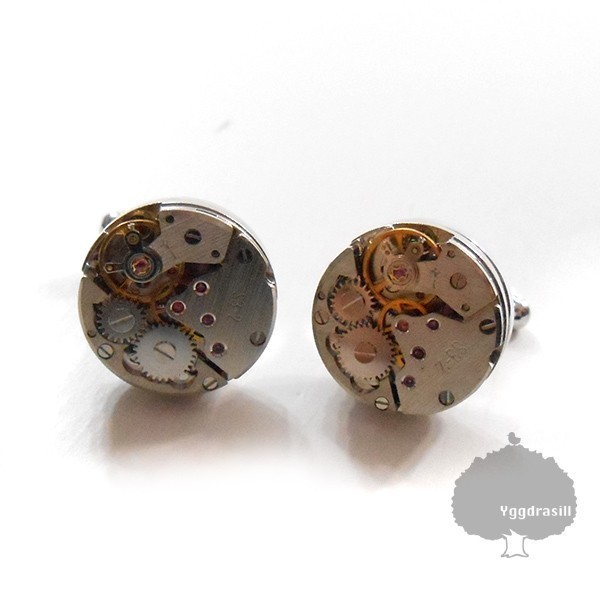 > YGG★機械式 時計 カフリンクス カフス シルバーカラー B フレームなし リューズなし 父の日 プレゼント 結婚式 二次会 パーティ 新品